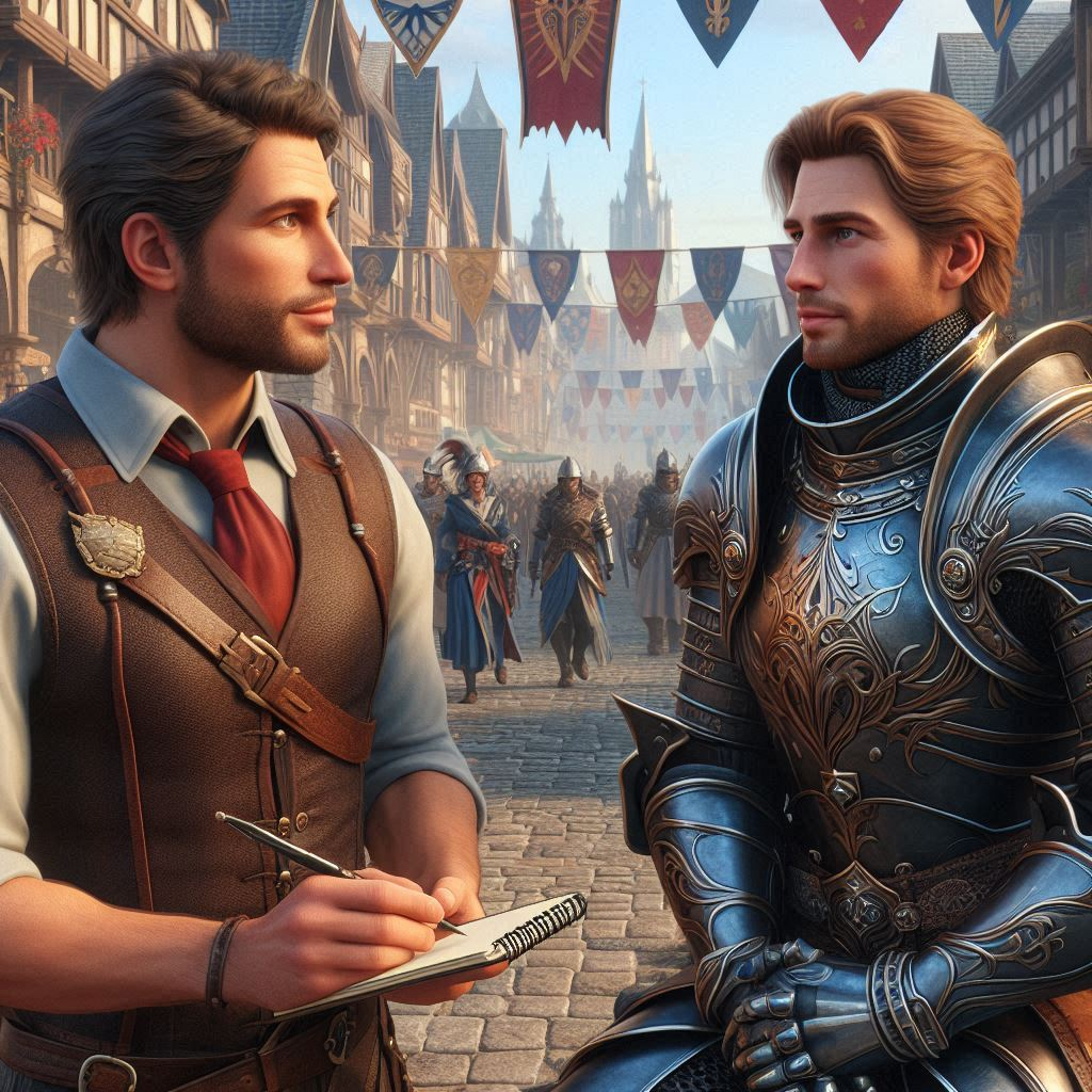 Med ét går døren op, og endelig træder de indenfor. Han rejser sig op med et stort smil, og går hen imod eventyrerne. Han henvender sig til lederen; en smuk elverkvinde, der altid virker til at gennemskue hans fiduser. Hun rækker ham sværdet, som de var taget ud for at hente.