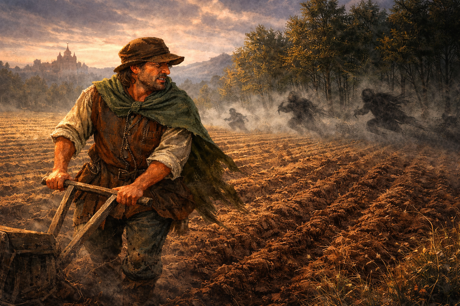 Bonden går på sin mark og gør den klar til forårets komme, den skal pløjes og kornene skal sås. Efter dronningen har delt Midtland op i mindre landområder, har alle haft travlt med at bearbejde jorden, og bonden har derfor, for en gangs skyld, haft fred til at gøre sig klar.